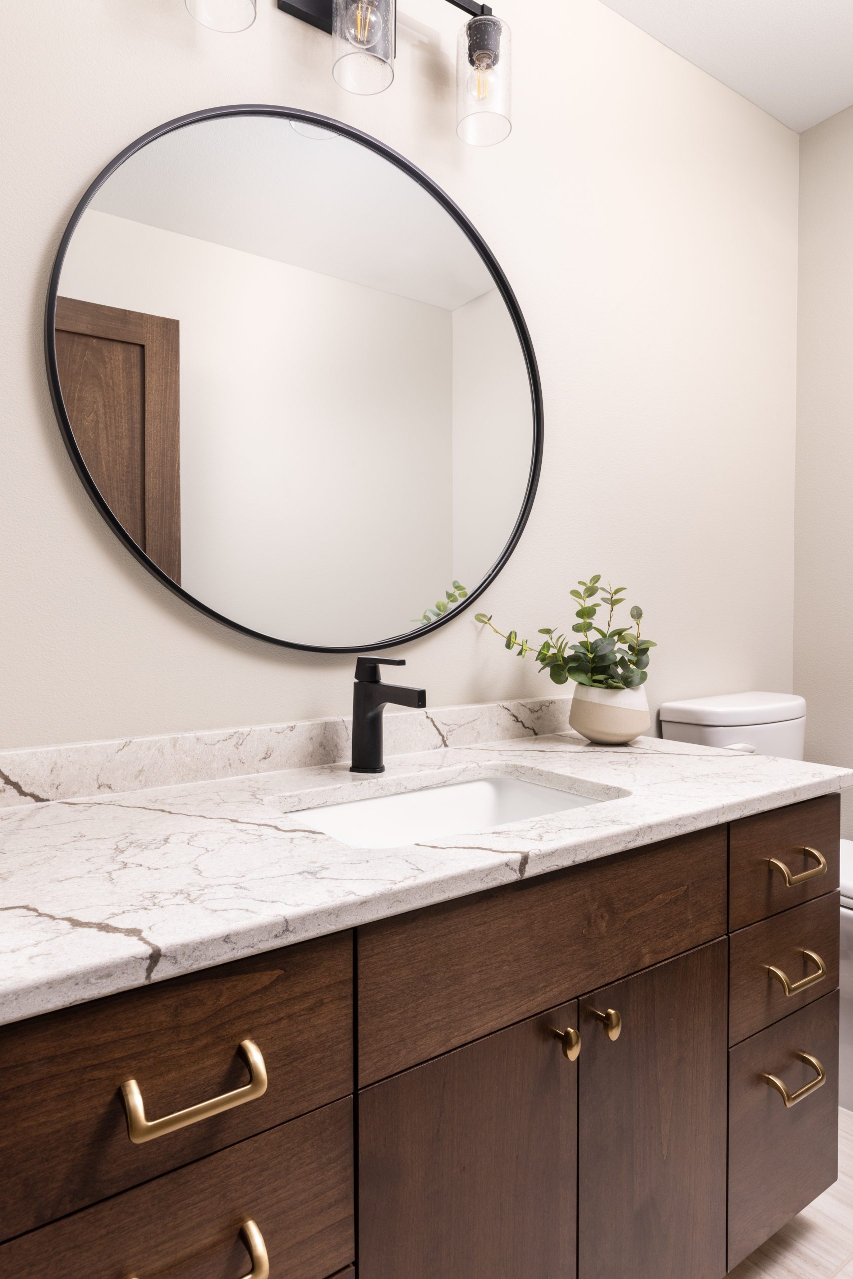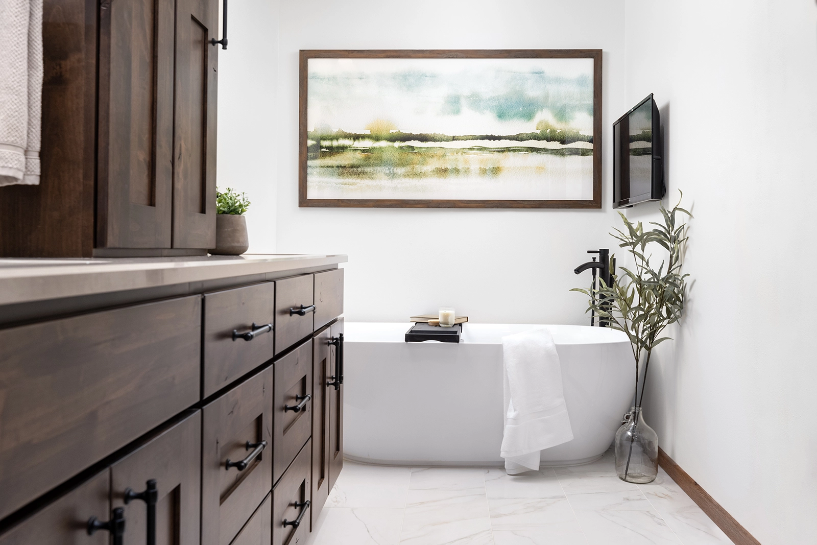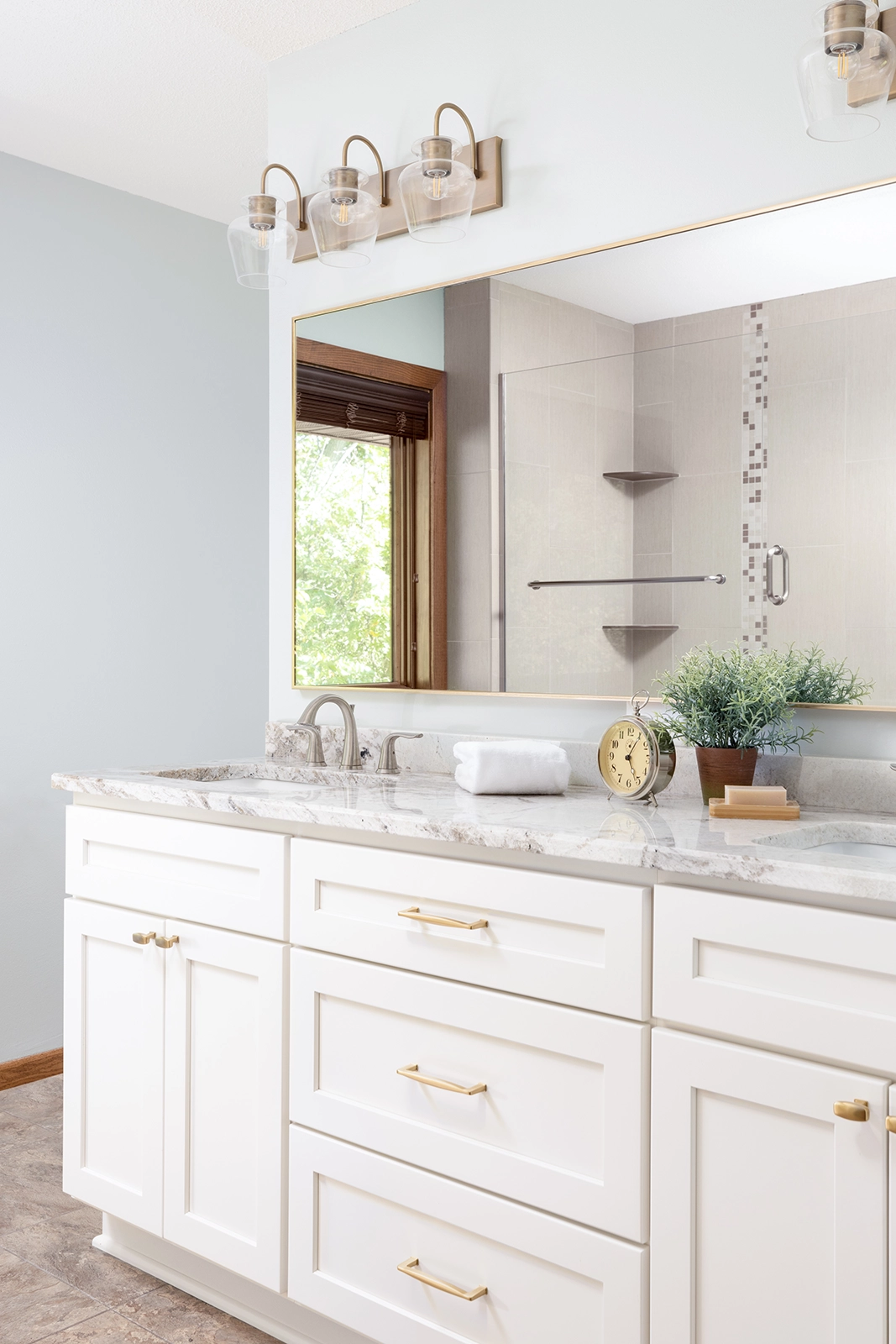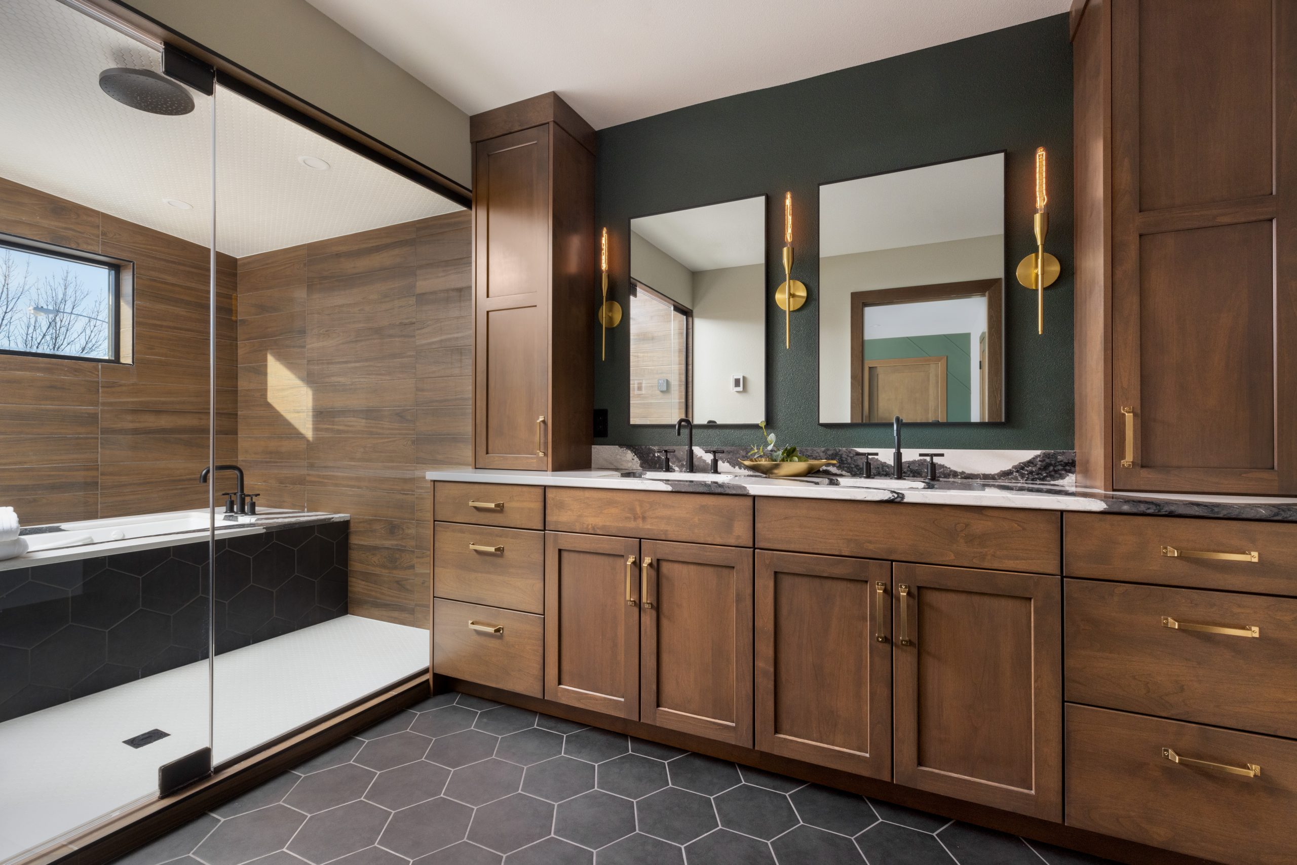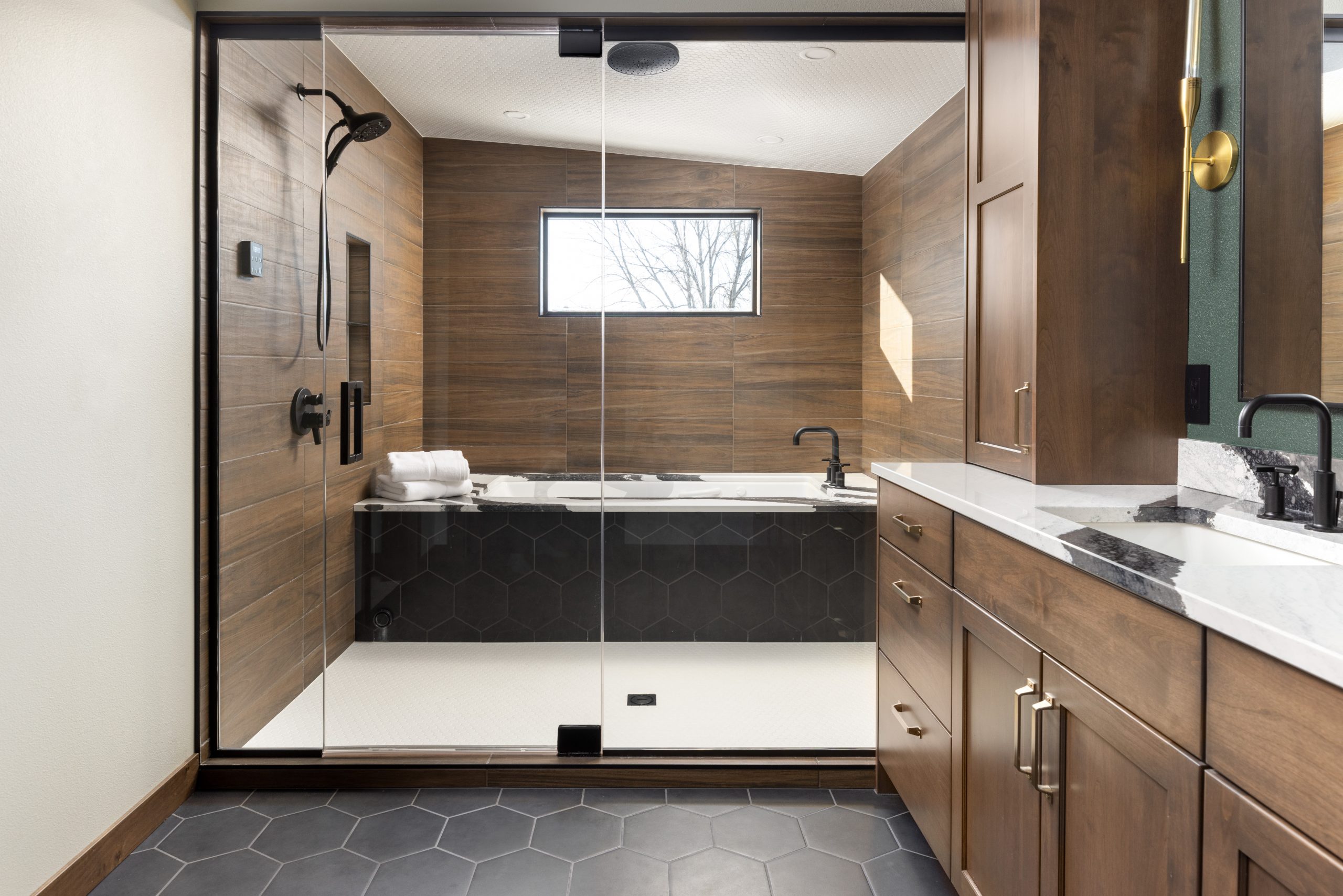 A+A Home Designs was hired to come up with a redesign for the primary bathroom and to update the vanity in another bathroom. The homeowners wanted a rustic spa-like retreat and we created just that. The primary bath is more functional for the homeowners and provides a tranquil space for them to start and end their days.